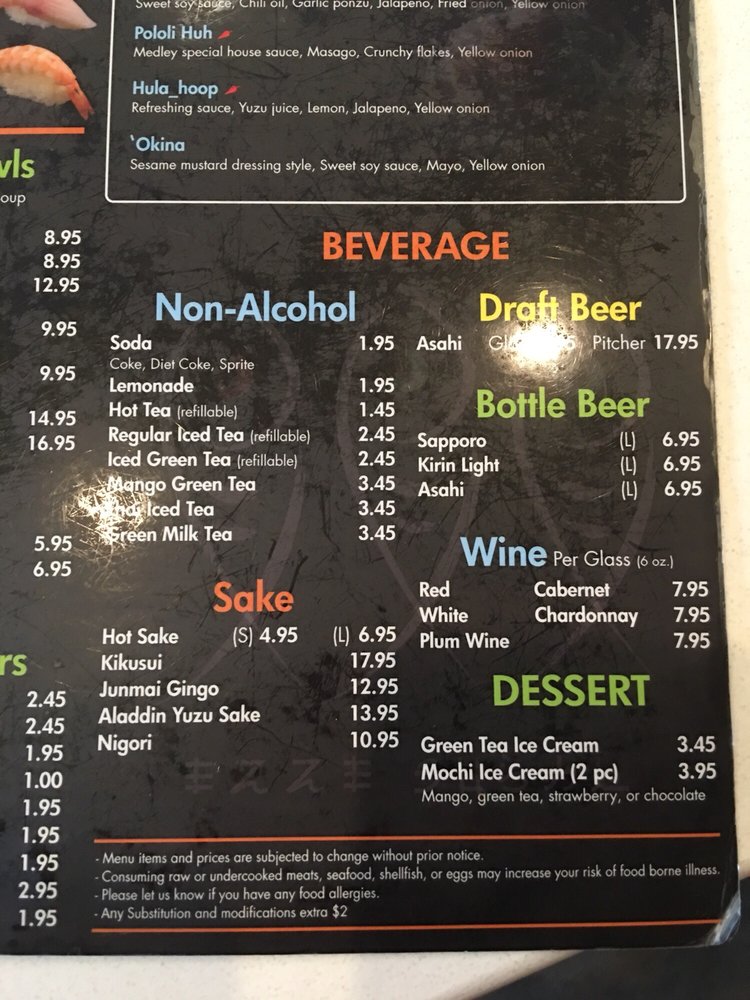Spicy. Spicy mayo, sesame creamy, ponzu sauce, masago, chili pepper, and yellow onion.
